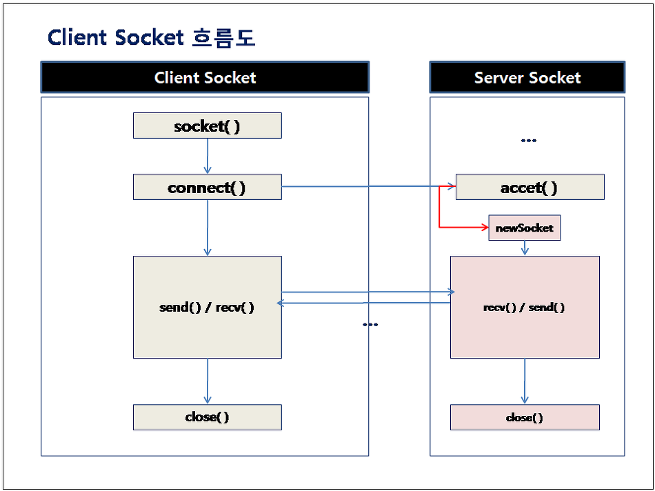 Client socket의 생성 및 접속 절차는 아래와 같습니다.